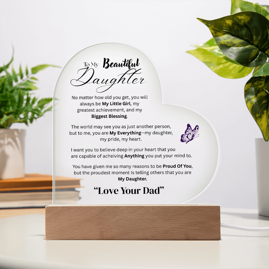 Color LED Acrylic Heart Plaque -To My Daughter from Dad - Design 2