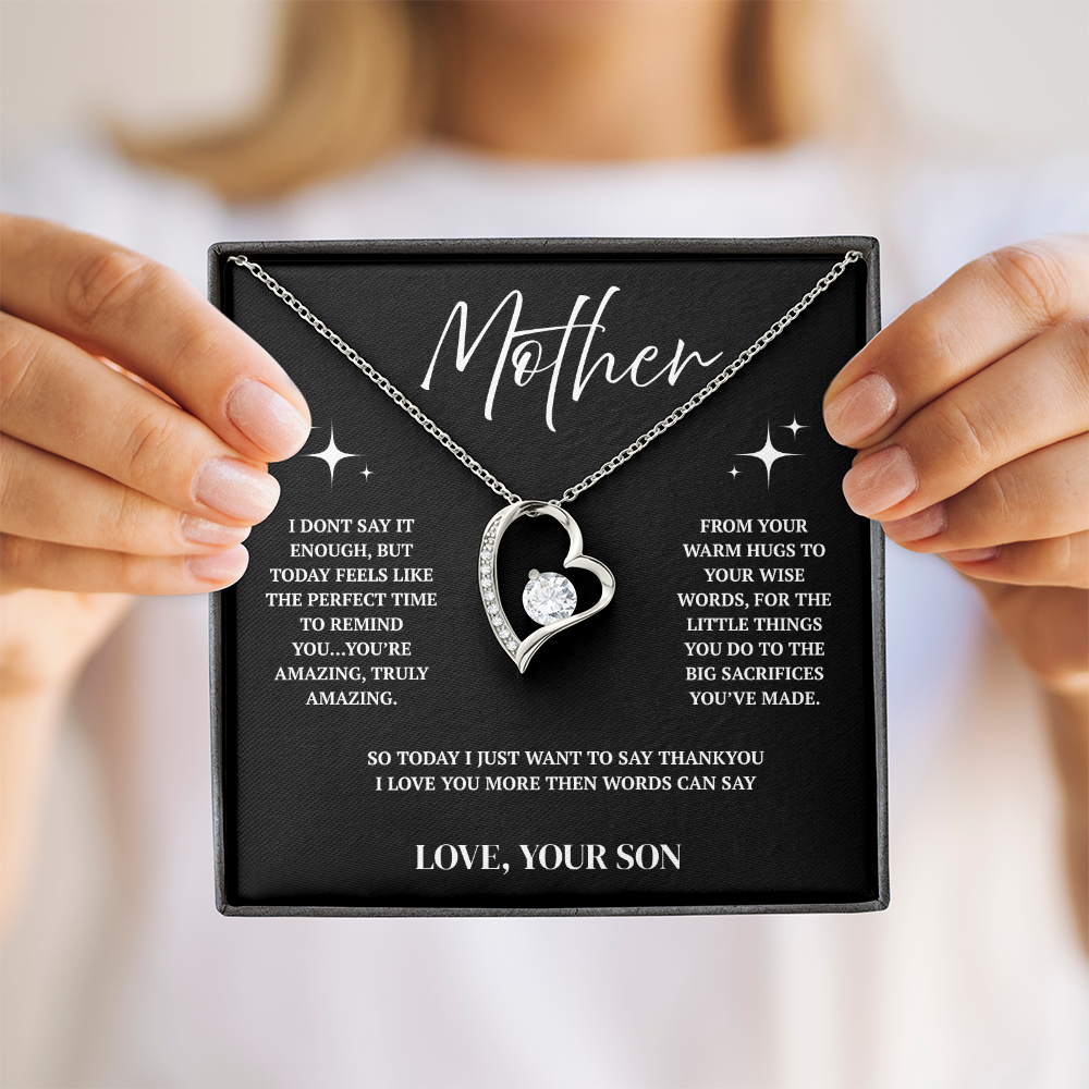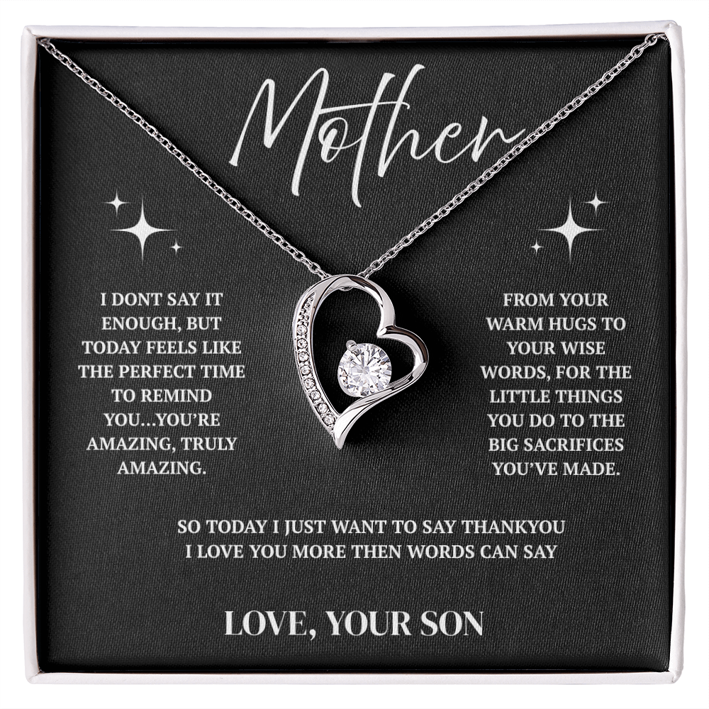 The dazzling Forever Love Necklace is sure to make her heart melt! This necklace features a stunning 6.5mm CZ crystal surrounded by a polished heart pendant embellished with smaller crystals to add extra sparkle and shine. Beautifully crafted with either a white gold or yellow gold finish, be sure to give her a classic gift she can enjoy everyday.