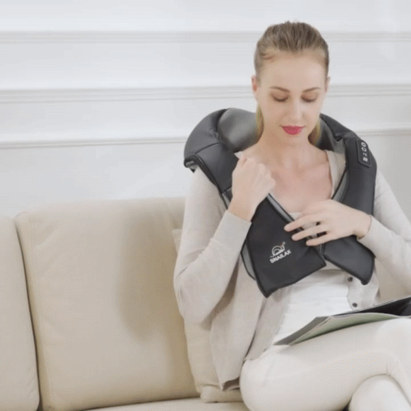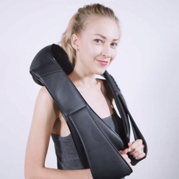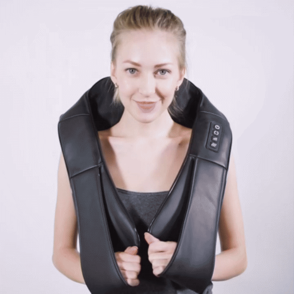 Introducing the ThermaRelief Neck and Shoulder Soother. It's more than a massager. It's a portable relaxation experience. With powerful 3D massage nodes and soothing heat functionality, it instantly alleviates tension and stress. Plug it in at home, or use it in your car for relief even on the go. Experience hands-free comfort with its built-in hangers, making it your personal masseuse anywhere. Embrace a world where peace and comfort travel with you.